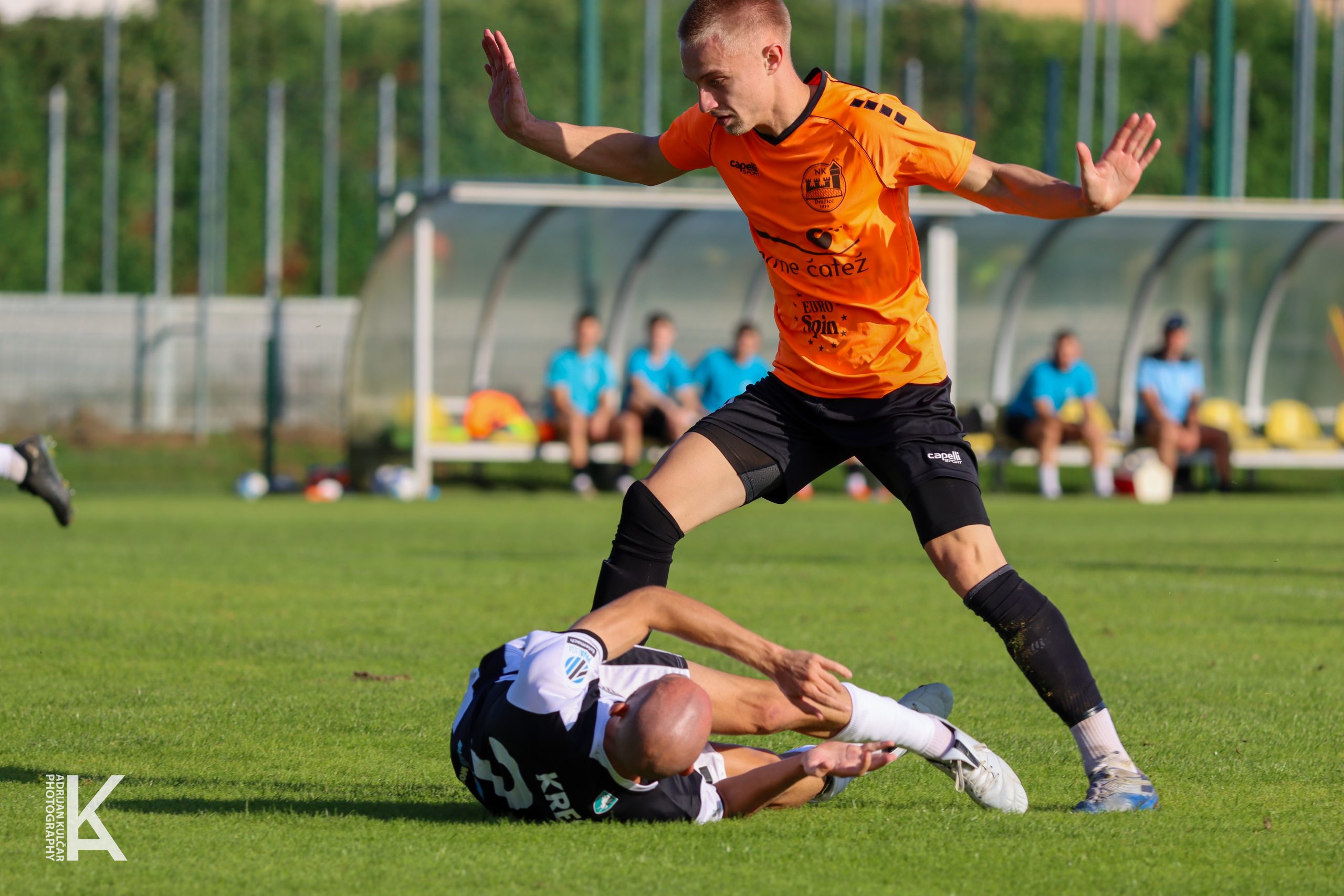 Foto: Adrijan Kulčar Deli na Facebook Deli na Twitter Deli na Google+ Deli na Reddit Deli na Pinterest Deli na Linkedin V Brežicah se je odvijal obračun prvega kroga pokalnega tekmovanja, na katerem so Brežičani poizkušali priti do presenečenja proti prvoligašu iz Rogaške Slatine. Upanje domačega tretjeligaša po pozitivnem rezultatu je hitri skopnelo, saj so Slatinčani po vsega sedmih minutah povedli že z dvema goloma prednosti. Za hitro dvojno vodstvo je poskrbel Oliver Kregar. Rogaška je srečanje dokončno odločila že v 37. minuti, ko je za 0:3 zabil Toni Vinogradac in svojemu moštvu priboril mirno nadaljevanje. Brežičani so na začetku drugega polčasa po strelu Nika Geča dosegli časten zadetek in se od letošnjega pokala poslovili s porazom 1:3. Brežice 1919 – Rogaška 1:3 (0:3) Geč (48′); Kregar (3′, 7′), Vinogradac (37′) Fotogalerija včerajšnjega dvoboja iz Brežic, skozi fotografski objektiv Adrijana Kulčarja: Foto: Adrijan Kulčar Foto: Adrijan Kulčar Foto: Adrijan Kulčar Foto: Adrijan Kulčar Foto: Adrijan Kulčar Foto: Adrijan Kulčar Foto: Adrijan Kulčar Foto: Adrijan Kulčar Foto: Adrijan Kulčar Foto: Adrijan Kulčar R. Š.