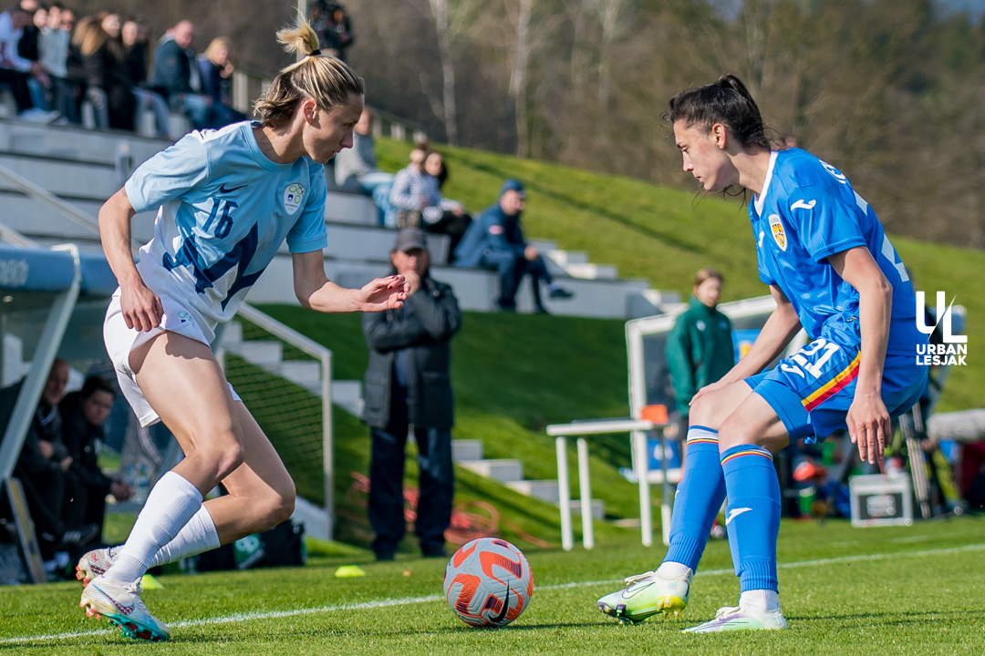 Varovanke Boruta Jarca so ob odmoru vodile z minimalnih 1:0, potem ko je v zaključku prvega dela boljšo igro Slovenije po lepi podaji Lare Prašnikar kronala Ana Milović. Slovenke so bile podjetnejše tudi večji del drugega polčasa, toda tik pred zadnjim sodnikovim piskom so ostale brez zmage. Za Romunijo je z nekaj sreče v četrti minuti sodnikovega dodatka po odbitku zadela Ana Maria Vladulescu.