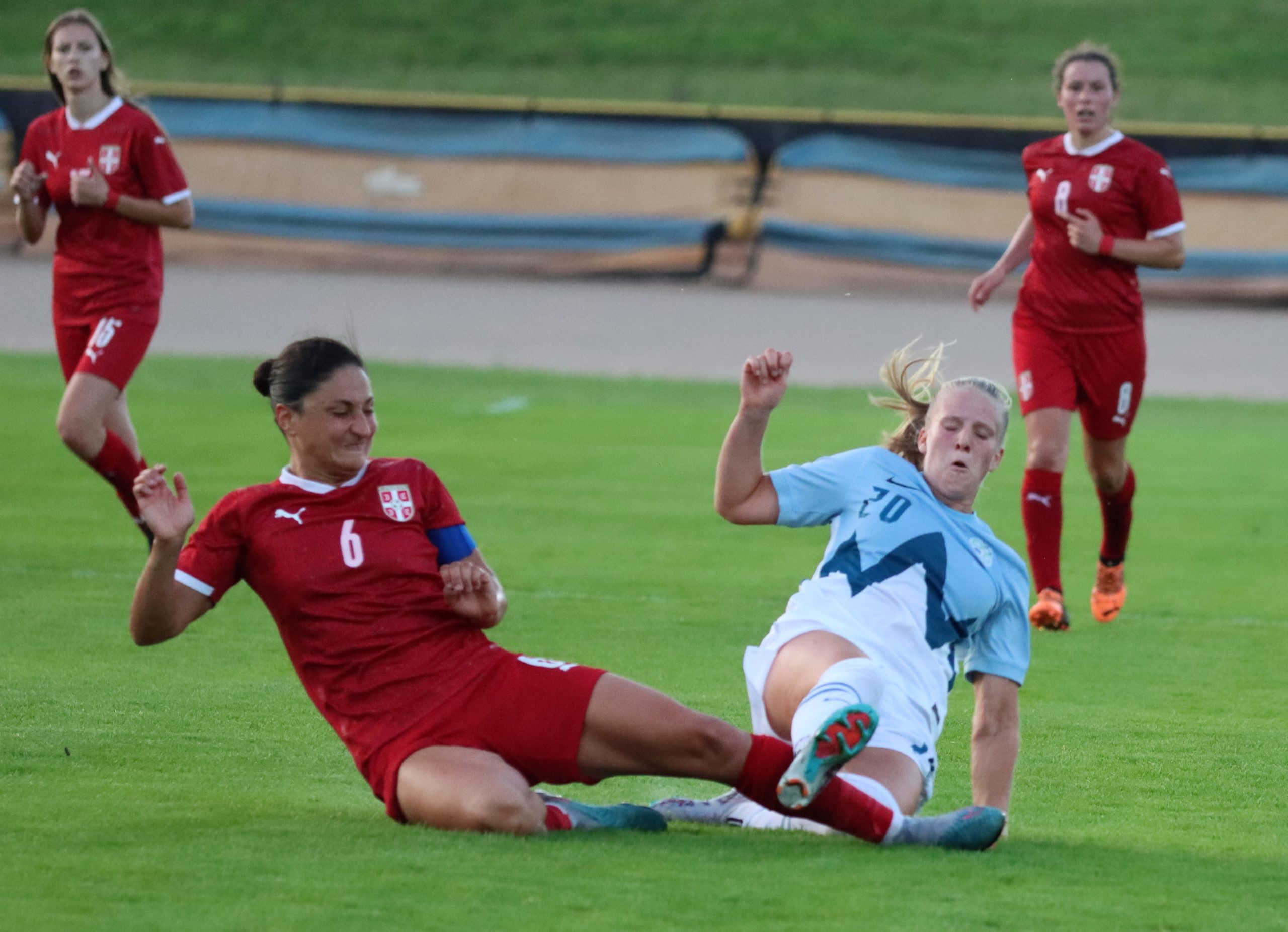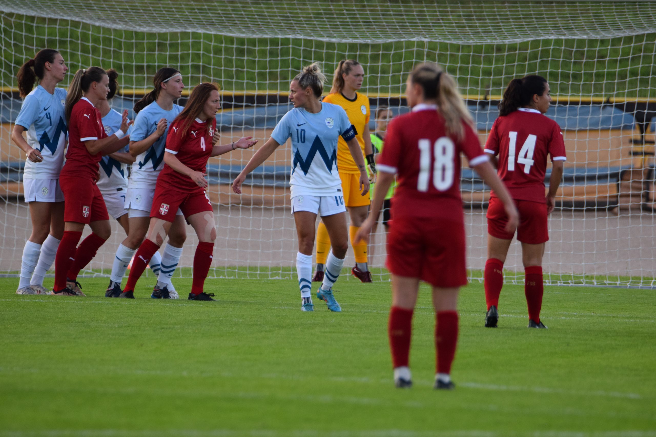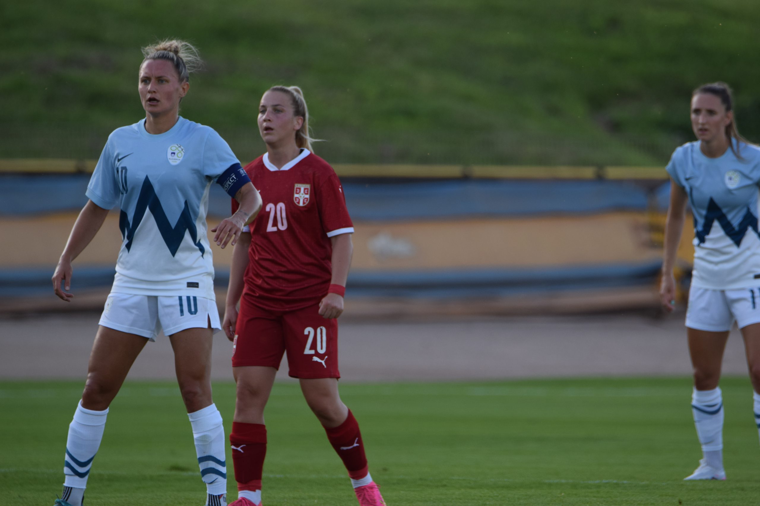 Foto: Adrijan Kulčar Deli na Facebook Deli na Twitter Deli na Google+ Deli na Reddit Deli na Pinterest Deli na Linkedin Slovenska ženska reprezentanca je na stadionu Matije Gubca v Krškem proti Srbiji merila moči na zadnji prijateljski tekmi pred jesensko premiero v ženski Ligi narodov. Srbkinje so slavile visoko zmago. Obračun se je zaključil z rezultatom 0:3 in je bil odločen že do odmora. Srbija je odlično začela in po vsega osmih minutah preko Jovane Damnjanović prišla do vodstva. Kmalu zatem je podvojitev z dobro obrambo preprečila Zala Meršnik, ki pa je do konca polčasa klonila še dvakrat. Po pol ure igre jo je z roba kazenskega prostora z lepim strelom ugnala Tijana Filipović, tik pred odhodom na odmor pa je za rezultat polčasa in tudi tekme poskrbela Dejana Stefanović. To je za varovanke Boruta Jarca bil prvi poraz po 12. aprilu 2022, ko so v kvalifikacijah za svetovno prvenstvo z minimalnih 1:0 izgubile na gostovanju v Franciji. Od takrat so Slovenke nanizale osem tekem brez poraza, na katerih so po štirikrat slavile in remizirale. Dvoboj proti Srbiji je služil tudi kot generalka pred jesenskim pričetkom ženske Lige narodov. Slovenija bo v premierni sezoni tega tekmovanja nastopala v ligi B, kjer jo v boju za uvrstitev na stopničko višje čakajo reprezentance Češke, Bosne in Hercegovine in Belorusije. Slovenija – Srbija 0:3 (0:3) Damnjanović (8′), Filipović (31′), Stefanović (45′) Fotogalerija obračuna z zelenice stadiona Matije Gubca, skozi fotografski objektiv Adrijana Kulčarja: Foto: Adrijan Kulčar Foto: Adrijan Kulčar Foto: Adrijan Kulčar Foto: Adrijan Kulčar Foto: Adrijan Kulčar Foto: Adrijan Kulčar Foto: Adrijan Kulčar Foto: Adrijan Kulčar Foto: Adrijan Kulčar Foto: Adrijan Kulčar Foto: Adrijan Kulčar Foto: Adrijan Kulčar Foto: Adrijan Kulčar D.Š.
