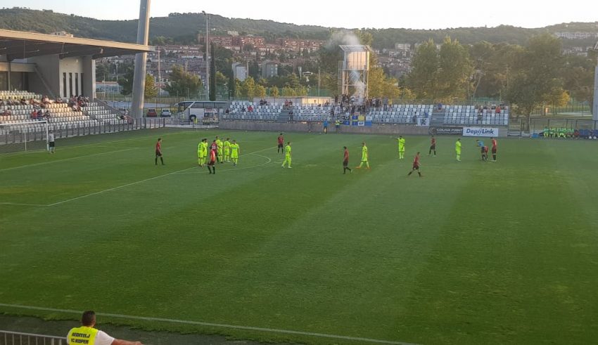 Deli na Facebook Deli na Twitter Deli na Google+ Deli na Reddit Deli na Pinterest Deli na Linkedin Koprčani so odigrali prvo srečanje v 2 SNL pred domačo publiko, na Bonifiki se se zbrali številni ljubitelji nogometa. Nasproti so jim stali nogometaši Brd, ki so tik pred iztekom igralnega časa izenačili, končni izzid je bil 1:1. Nogometaši Kopra so od prve minute krenili po prvo zmago v sezoni in tudi držali posest žoge, a v prvem polčasu niso uspeli zadeti. Domači so se sicer veselili zadetka v deseti minuti, vendar je bil zaradi igre z roko zadetek kapetana Ivice Guberca razveljavljen. Gostje so poizkušali s protinapadi, enega bi lahko izkoristili v 16. minuti, a je Dawoud Dominik Jalinous meril ravno v vratarja Igorja Nenezića. Sedem minut kasneje je tudi Koper izvedel hitri napad, z roba kazenskega prostora je natančno meril Jaka Štromajer, odlično se je izkazal Denis Pintol in s skrajnimi napori preprečil zadetek domačih. Napadi Kopra so se vrstili do konca prvega dela, vendar sta mreži mirovali. V nadaljevanju so Koprčani lovili vodilni zadetek in ga tudi dosegli v 57. minuti srečanja. Žoga je krožila okoli obrambnega prostora gostov, do žoge je na levi strani prišel Goran Galešić, ki je natančno meril v daljši vratarjev kot. Po doseženem zadetku so domači prepustili nadzor igre gostom, ki so s potrpežljivo igri prišli do točke. Tri minute pred koncem se je v kazenskem prostoru sam pred domačim vratarjem znašel Kris Jogan in neubranljivo meril v levi zgornji kot vratarja. Do konca srečanja so gostje poizkusili priti tudi do treh točk, a so bili ob zaključkih napadov premalo natančni. FC Koper – NK Brda 1:1 600; Galešić 57’; Jogan 87’ Uredništvo SNPortal.si