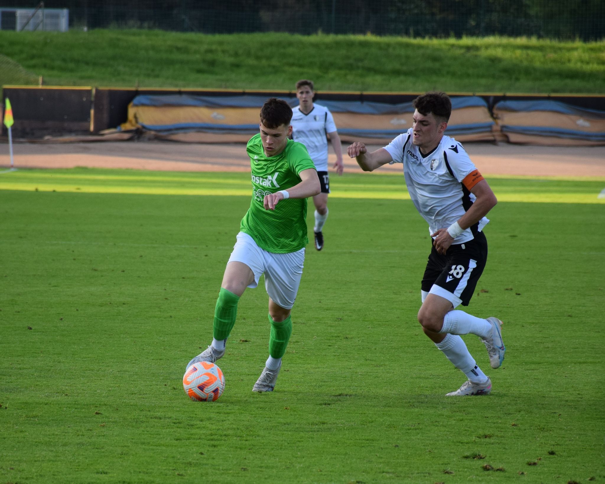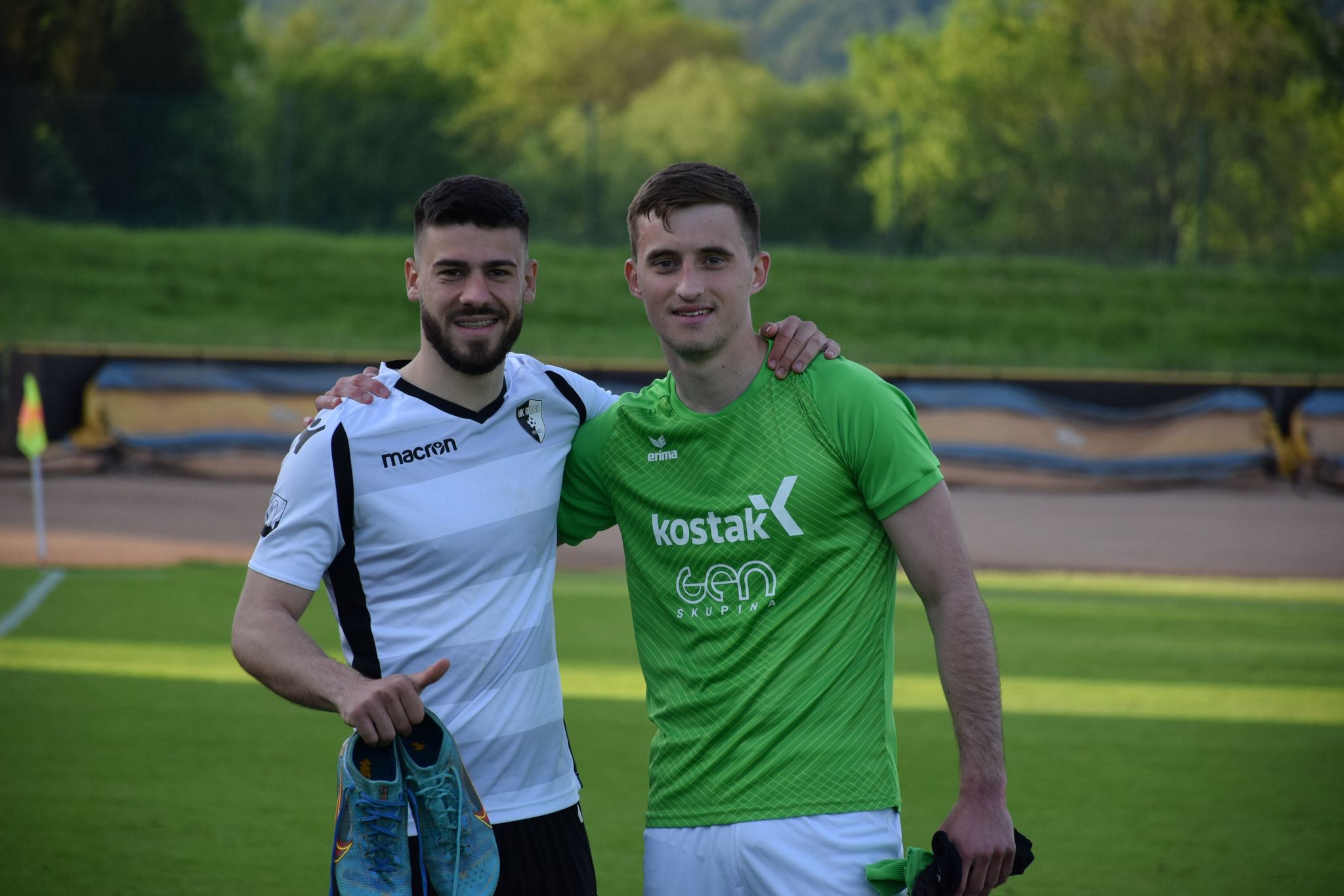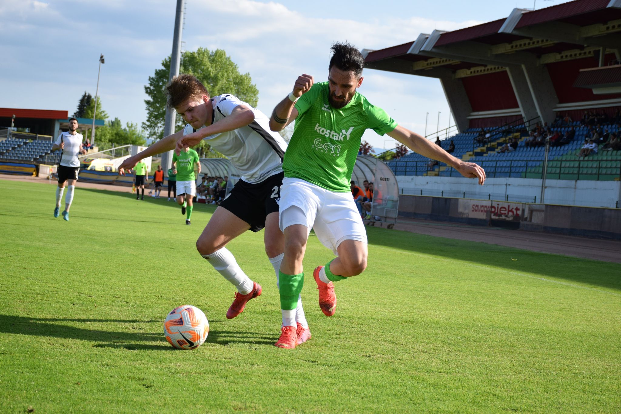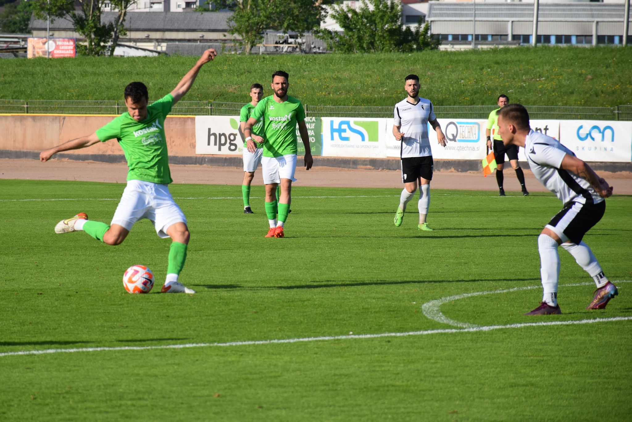 Foto: Adrijan Kulčar Deli na Facebook Deli na Twitter Deli na Google+ Deli na Reddit Deli na Pinterest Deli na Linkedin Na štirih četrtkovih obračunih smo videli polovično uspešnost domačinov. Doma so slavili Krčani in Novomeščani, gostujočih treh točk so se razveselili v taboru Brinja Grosuplja in Nafte. Na stadionu Matije Gubca so gledalci spremljali dvoboj nekdanjih prvoligašev. Uspešnejši so bili nogometaši Krškega, ki so v zaključku sezone pričeli z zbiranjem točk, a prepozno. Njihov zaostanek za odrešilnim 14. mestom je že po včerajšnjem slavju Triglava znašal neulovljivih deset točk. Proti knapom so varovanci Roka Zorka prišli do šeste zmage v sezoni, slavili so z rezultatom 2:1. Vsi trije zadetki so padli v drugem polčasu, deset minut pred koncem rednega dela pa je s strelom z bele točke odločil Tomislav Hanžek. Kljub koncu upanja po obstanku bi lahko Krško v tej sezoni še precej mešalo štrene v 2. SNL. Klub v zaključku sezone igra vse bolje, v zadnjem krogu pa bo na svojem stadionu gostil Rogaško, ki z Aluminijem bije hud boj za napredovanje med prvoligaško elito. V bližnjem Novem mestu so prav tako slavili domačini. Nogometaši Krke so pred svojimi navijači gostili Ilirijo in niz neporaženosti podaljšali na devet tekem. Do vseh treh točk so prišli po preobratu. V zaključku prvega dela so po zadetku Jakoba Novaka namreč povedli Ljubljančani in se približali četrti zmagi v nizu, toda v nadaljevanju sta Josip Majić dvakrat in Jan Đapo tehtnico prevesila na domačo stran. V zadnjih sekundah obračuna je za končnih 3:2 zabil Matej Poplatnik, ki je ponovno sam na vrhu drugoligaške lestvice strelcev (22). Preostala četrtkova obračuna so dobili gostje. V Dobu so Grosupeljčani nadigrali domačine in si že do odmora priigrali dvojno prednost. Tomaž Kepic je v zaključku srečanja rezultat povišal celo na 0:3, tik pred koncem pa je za časten zadetek Dobljanov poskrbel Luka Gajič. Z identičnim rezultatom, a nekoliko težje, so v Dekanih slavili Lendavčani. Nafta je sredi prvega polčasa po zadetku Stjepana Oštreka povedla in minimalno prednost obdržala do odmora. Po prihodu iz slačilnic so udarili Dekančani, praktično v prvem napadu je izid poravnal Tai Matea Panić. Rezultatska negotovost je trajala vse do zaključnih minut. V 76. minuti so Prekmurci po zadetku Mirsada Sulejmanovića povedli, pet minut kasneje pa po novem uspehu Oštreka zmago potrdili. Hrvat je bil uspešen izvajalec najstrožje kazni. 2. SNL, tekme 28. kroga: Krško – Rudar Velenje 2:1 (0:0) Jurečič (49′), Hanžek (80′ 11m); Biggs (67′) Krka – Ilirija 1911 3:2 (2:1) Majić (36′ 11m, 55′), Đapo (49′); Novak (32′), Poplatnik (90+3′) Roltek Dob – Brinje Grosuplje 1:3 (0:2) Gajič (80′ 11m); Hajdinjak (10′), Piskule (45′ 11m), Kepic (76′) Jadran Dekani – Nafta 1903 1:3 (0:1) Panić (46′); Oštrek (10′, 81′ 11m), Sulejmanović (76′) Fotogalerija obračuna med Krčani in Velenjčani skozi fotografski objektiv Adrijana Kulčarja: Foto: Adrijan Kulčar Foto: Adrijan Kulčar Foto: Adrijan Kulčar Foto: Adrijan Kulčar Foto: Adrijan Kulčar Foto: Adrijan Kulčar Foto: Adrijan Kulčar Foto: Adrijan Kulčar Foto: Adrijan Kulčar Foto: Adrijan Kulčar Foto: Adrijan Kulčar Foto: Adrijan Kulčar Foto: Adrijan Kulčar Foto: Adrijan Kulčar Foto: Adrijan Kulčar Foto: Adrijan Kulčar Foto: Adrijan Kulčar R. Š.