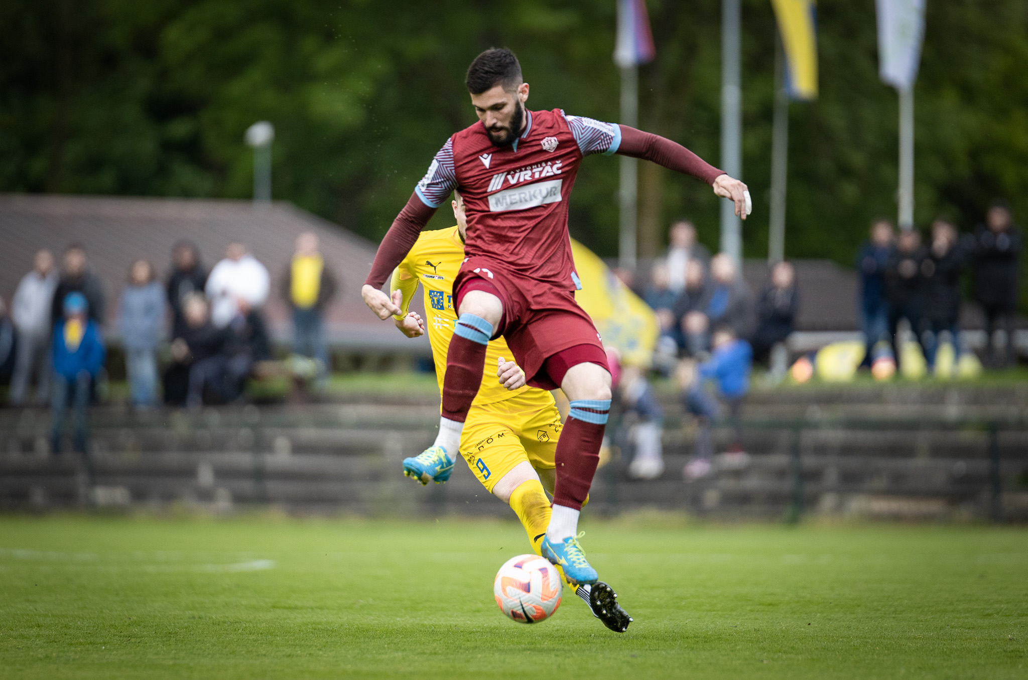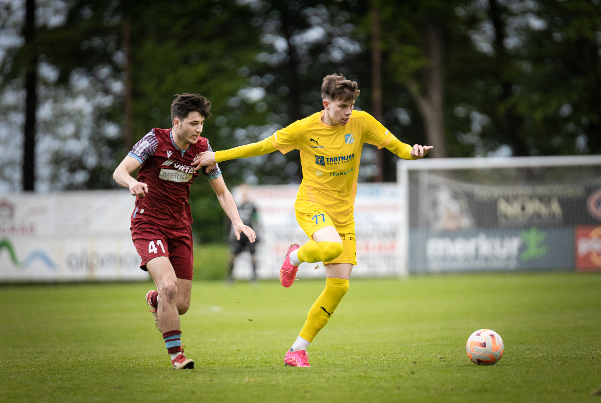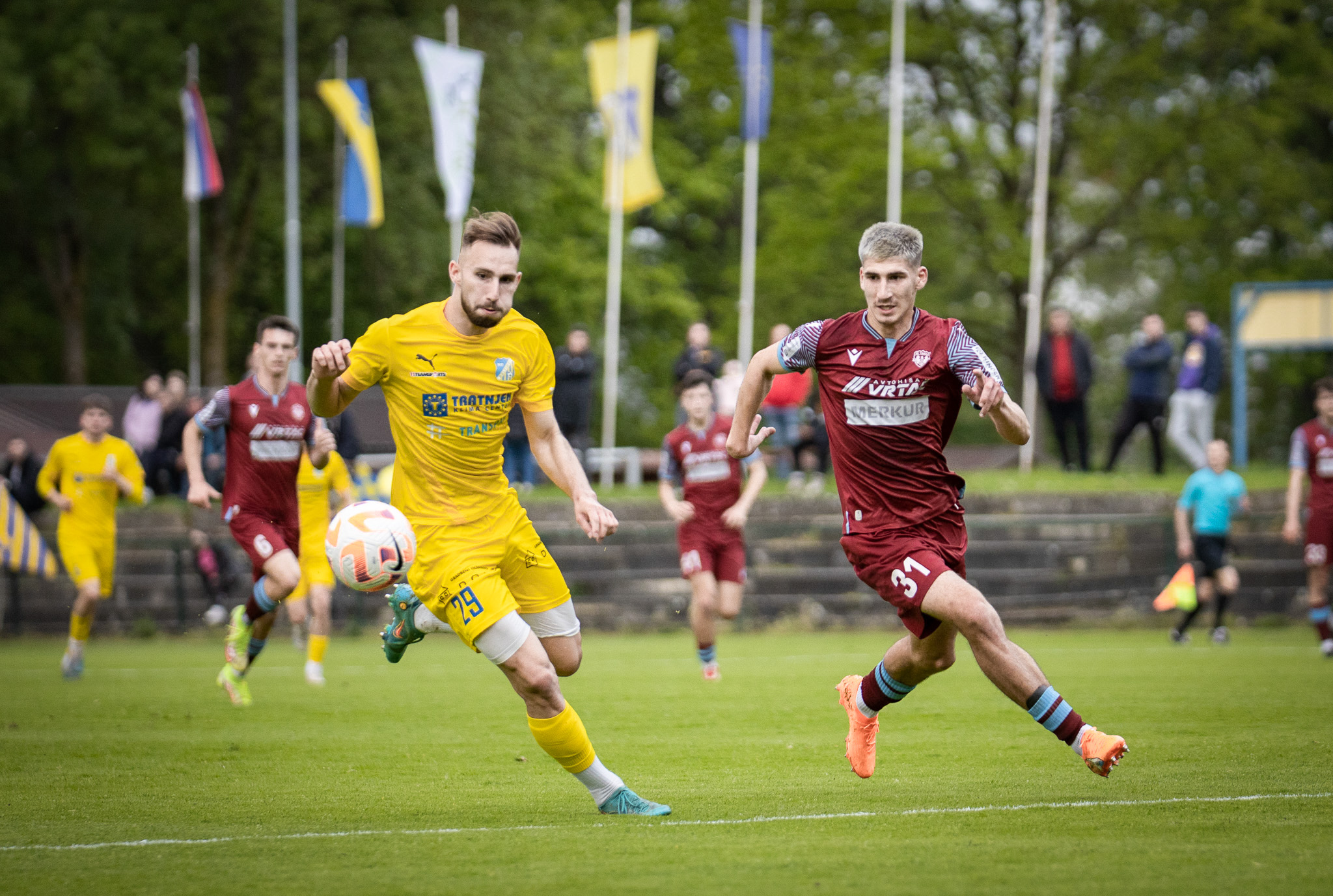 Foto: Niko Časar Deli na Facebook Deli na Twitter Deli na Google+ Deli na Reddit Deli na Pinterest Deli na Linkedin Dva kroga pred koncem drugoligaške sezone je v imenitnem položaju za napredovanje v prvo ligo ponovno Aluminij. Kidričani so v Biljah na krilih Nika Marinška slavili novo zmago ter ob tem izkoristili črn drugi polčas Rogaške v bližnji Ajdovščini. V prestolnici burje je dobro uro odlično kazalo Slatinčanom, ki pa so v zadnji tretjini dvoboja proti Primorju povsem odpovedali in si močno zapletli načrte v boju za elito. Nejc Gradišar in Matic Marcius sta poskrbela za dvojno vodstvo Rogaške ob odmoru, ki je ostalo nespremenjeno vse do 59. minute. Nato so domačini v manj kot 25 minutah na krilih dveh zadetkov Marka Nunića ter zadetka Tarika Čandića oziroma Eliana Demirovića prišli do popolnega preobrata in zmage z rezultatom 4:2. Kiks varovancev Oskarja Drobneta so v bližnjih Biljah izkoristili nogometaši Aluminija, tudi tokrat pa je najbolj zaslužen za zmago rdeče-belih bil njihov kapetan. V zaključku prvega dela so padli kar trije zadetki. Poljski napadalec Daniel Skiba je goste v 27. minuti povedel v vodstvo, toda le nekaj trenutkov kasneje je Dawoud Jalinous izid poravnal. Nato je v ospredje, kot že ničkolikokrat v tej sezoni, stopil Marinšek. Štiriindvajsetletnik je še pred odhodom na odmor z bele točke poskrbel za novo vodstvo Aluminija, v nadaljevanju pa tik pred koncem srečanja postavil še piko na i novim trem točkam ter ponovnemu skoku Kidričanov na vrh prvenstvene razpredelnice. Z zadetkom številka 21 se je Marinšek v boju za strelsko krono izenačil z Matejem Poplatnikom. Aluminij ima pred Slatinčani sedaj točko naskoka. Odlično formo iz zadnjih tednov je Bistrica nadaljevala tudi proti Fužinarju. Do tretje zaporedne zmage so Štajerci prišli po odlično izpeljanem prvem polčasu, v katerem so mrežo Korošcev zatresli kar štirikrat. Še nedavno so Bistričani pogledovali proti dnu lestvice, toda po odlični seriji bo Goran Stanković s svojimi varovanci v zadnjih 180 minutah sezone branil celo mesta v zgornji polovici. Za prvi poraz Fužinarja po treh remijih so najbolj zaslužni bili Ante Kuliš z dvema oziroma Nejc Bračko in Tim Ciganović s po enim zadetkom. V Prekmurju so pri v zaključku sezone brezskrbnih Beltinčanih gostovali nogometaši Triglava, ki jim je pred tem krogom v teoriji še vedno grozil tudi izpad iz lige. Gorenjci so vse dvome o obstanku ovrgli z deveto zmago v sezoni, s katero so prednost pred predzadnjimi Krčani povišali na neulovljivih deset točk razlike. Najbolj zaslužen za nove tri točke je bil Golden Okocha Gibson, ki je zabil oba zadetka gostov. Nigerijec je že do odhoda na odmor poskrbel za dvojno prednost, domačini pa so preko Filipa Kosija do častnega zadetka prišli v zadnji minuti rednega dela. 2. SNL, tekme 28. kroga: Primorje eMundia – Rogaška 4:2 (0:2) Nunić (59′, 76′), Čandić (65′), Demirović (83′); Gradišar (18′), Marcius (40′) Vitanest Bilje – Aluminij 1:3 (1:2) Jalinous (31′); Skiba (27′), Marinšek (35′ 11m, 82′) Kety Emmi&Impol Bistrica – Fužinar Vzajemci 4:0 (4:0) Bračko (5′), Kuliš (38′, 43′), Ciganović (40′) Klima Tratnjek Beltinci – Triglav Kranj 1:2 (0:2) Kosi (90′); Gibson (10′, 37′) Fotogalerija obračuna med Beltinci in Triglavom, skozi fotografski objektiv Nika Časarja: Foto: Niko Časar Foto: Niko Časar Foto: Niko Časar Foto: Niko Časar Foto: Niko Časar Foto: Niko Časar Foto: Niko Časar Foto: Niko Časar R. Š.