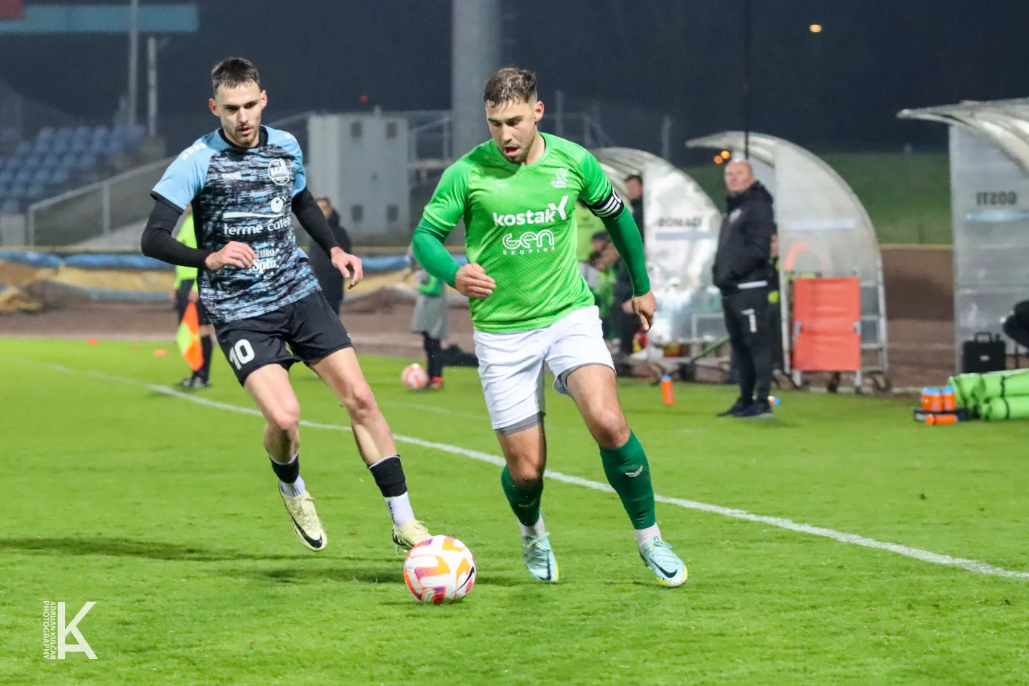 Foto: Adrijan Kulčar Deli na Facebook Deli na Twitter Deli na Google+ Deli na Reddit Deli na Pinterest Deli na Linkedin V vzhodni skupini 3. SNL se je pomlad pričela udarno, s posavskim derbijem med Krčani in Brežičani. Lepo zapolnjena tribuna stadiona Matije Gubca je spremljala visoko zmago domačinov. Krško je pred 650 navijači gladko odpravilo Brežice, končni rezultat se je ustavil pri kar 5:0. Zanj je med najbolj zaslužnimi bil kapetan domačega moštva Tomaž Zakrajšek, ki je za hrbet Nejca Travnikarja poslal dve žogi. Triindvajsetletni vezist je prvič meril v polno že po desetih minutah za zgodnje vodstvo domačinov. Ko je po uri igre s svojim drugim zadetkom povišal na 4:0 je že nekaj časa bilo jasno, da bodo tri točke ostale doma. Timon Regvar, Žiga Ribič in Lan Lekše so ostali, ki so dodali svoj rezultatski doprinos k osmi zmagi Krčanov v tej sezoni. Krčani imajo na tretjem mestu sedaj 27 osvojenih točk. Ob odigrani tekmi več njihov zaostanek za Vidmom znaša štiri točke, medtem ko jim vodilna Drava beži še za dve točki več. Krško – Brežice 1919 Terme Čatež 5:0 (2:0) Zakrajšek (10′, 60′), Regvar (44′), Ribič (48′), Lekše (85′) Fotogalerija derbija skozi fotografski objektiv Adrijana Kulčarja: Foto: Adrijan Kulčar Foto: Adrijan Kulčar Foto: Adrijan Kulčar Foto: Adrijan Kulčar Foto: Adrijan Kulčar Foto: Adrijan Kulčar Foto: Adrijan Kulčar Foto: Adrijan Kulčar Foto: Adrijan Kulčar Foto: Adrijan Kulčar Foto: Adrijan Kulčar Foto: Adrijan Kulčar Foto: Adrijan Kulčar Foto: Adrijan Kulčar Foto: Adrijan Kulčar Foto: Adrijan Kulčar Foto: Adrijan Kulčar R. Š.
