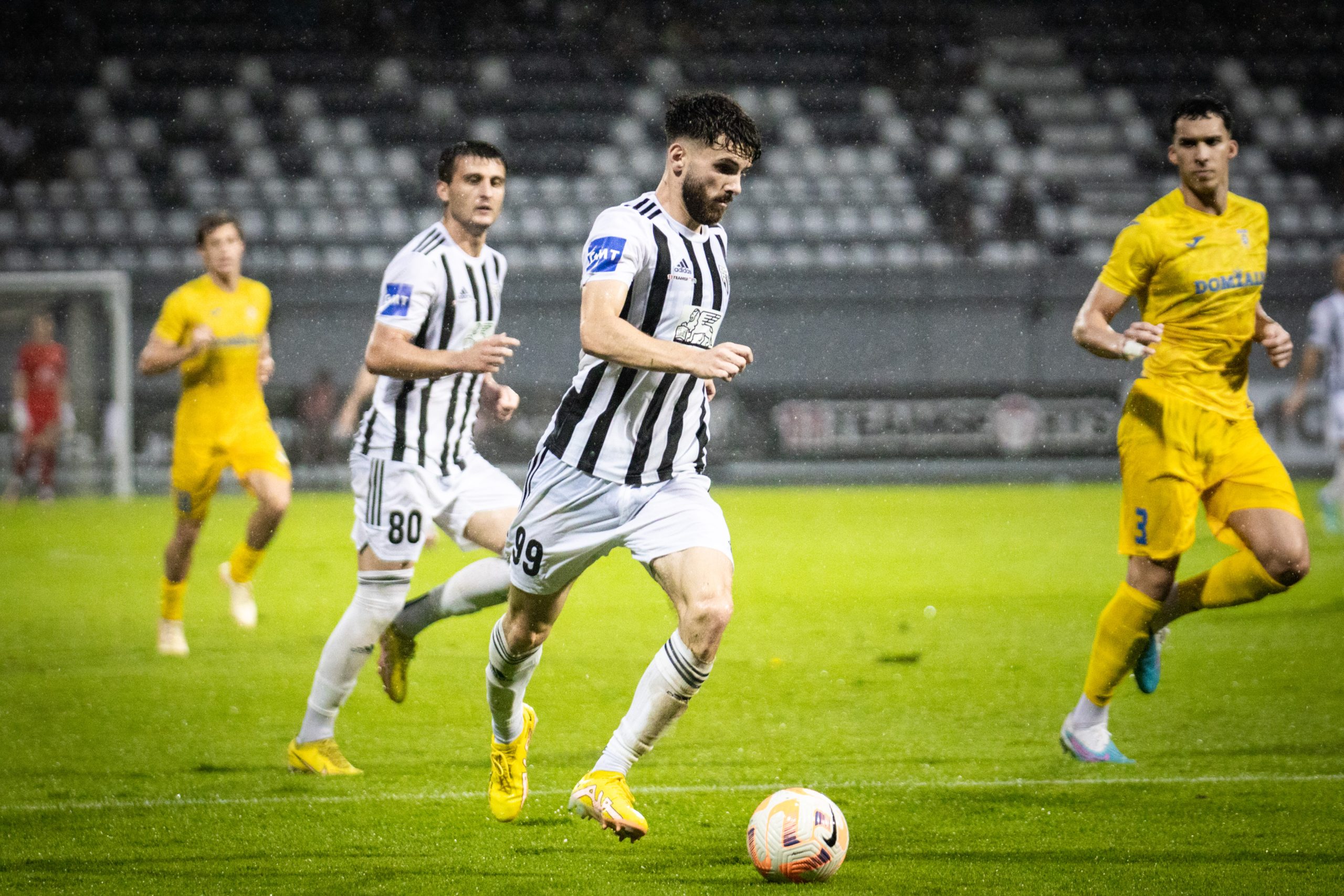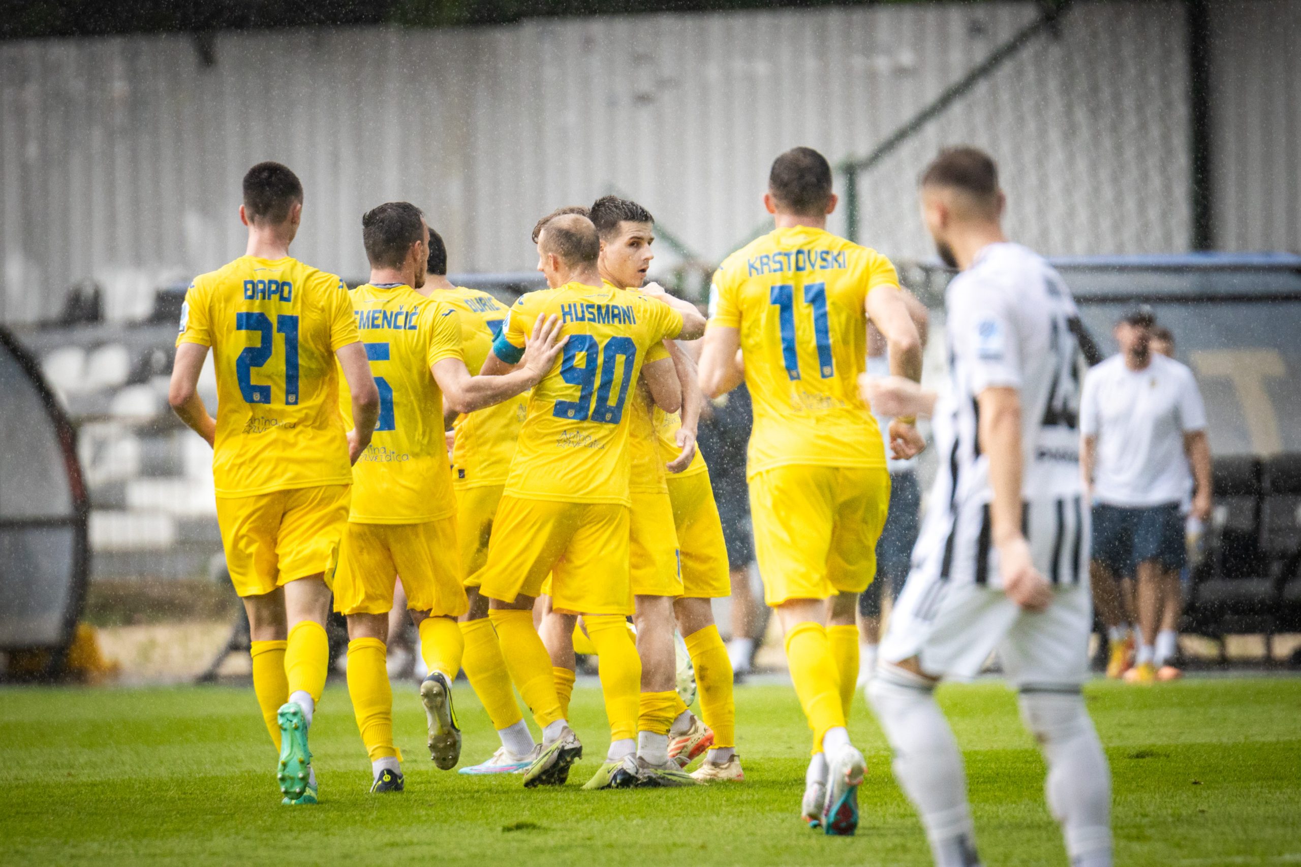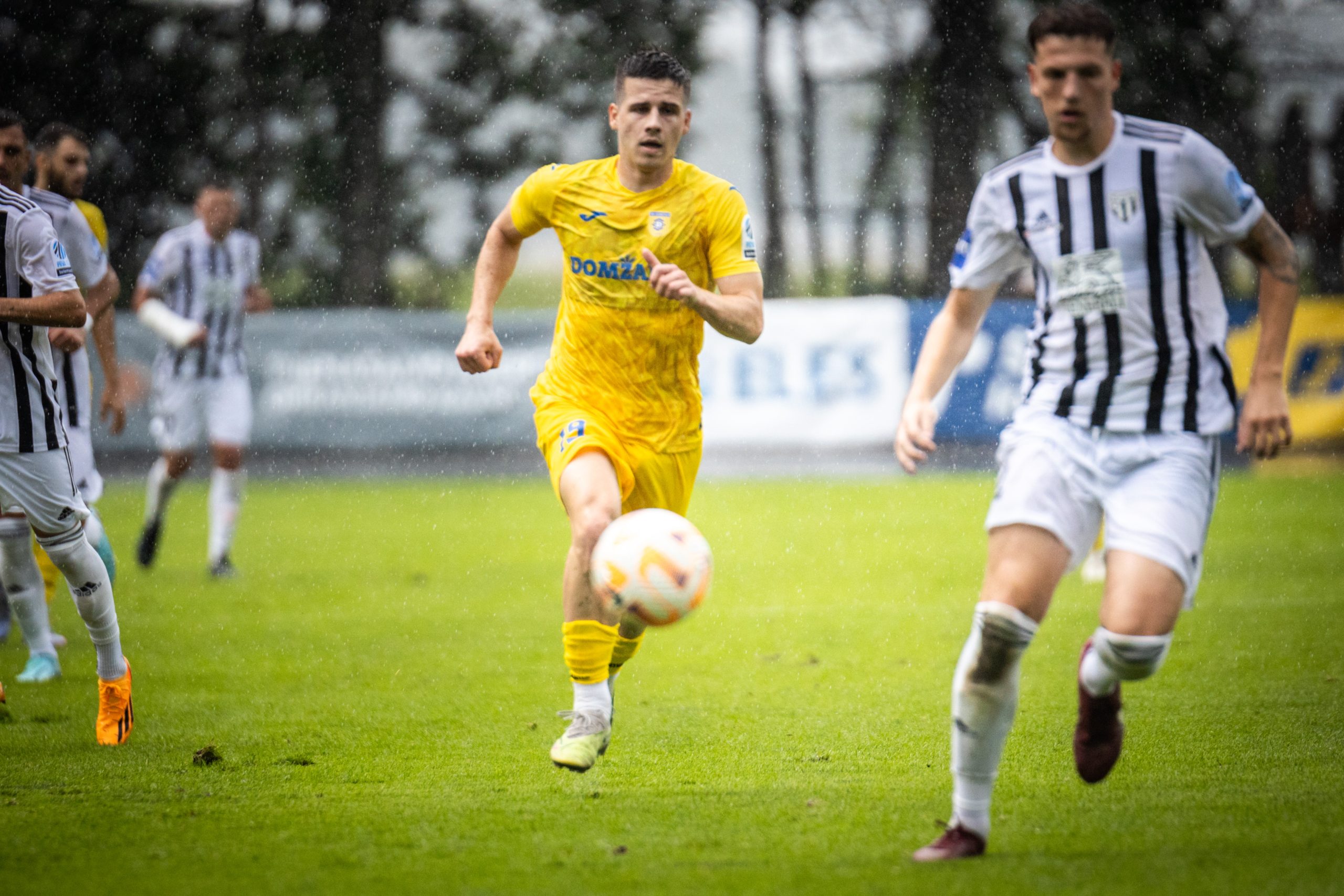 Foto: Niko Časar Deli na Facebook Deli na Twitter Deli na Google+ Deli na Reddit Deli na Pinterest Deli na Linkedin Po nepričakovanem slovesu na prvi stopnički kvalifikacij za uvrstitev v konferenčno ligo so v uvodnem krogu državnega prvenstva Domžalčani gostovali v prekmurski prestolnici, kjer so se hitro znašli v dvojnem zaostanku. Toda rumeni so do konca dvoboja stvari obrnili sebi v prid. Izjemno razburljiv obračun v Fazaneriji je postregel s petimi zadetki. Mura je že do sredine prvega dela po zaslugi Dardana Shabanhaxhaja in Emirja Saitoskega povedla z 2:0. Po pol ure igre je goste v igro vrnil Edin Julardžija, v drugem polčasu pa sta za popoln preobrat Domžal poskrbela Gašper Černe in Klemen Mihelak, ki je zatresel lastno mrežo. Mura – Domžale 2:3 (2:1) Shabanhaxhaj (11′), Saitoski (24′); Julardžija (30′), Černe (78′), Mihelak (90+4′ ag) Fotogalerija včerajšnjega obračuna v Prekmurju, skozi fotografski objektiv Nika Časarja: Foto: Niko Časar Foto: Niko Časar Foto: Niko Časar Foto: Niko Časar Foto: Niko Časar Foto: Niko Časar Foto: Niko Časar Foto: Niko Časar Foto: Niko Časar D.Š.