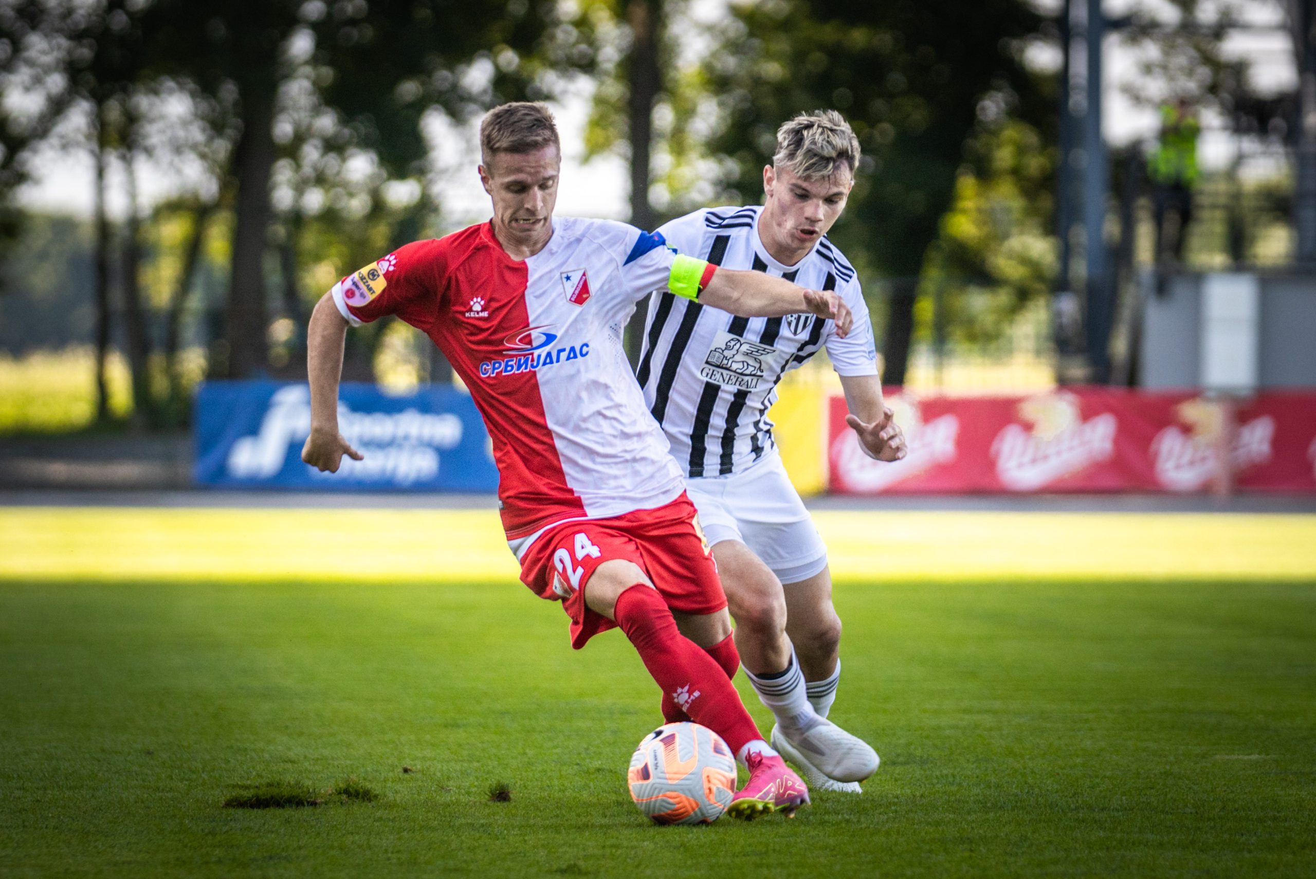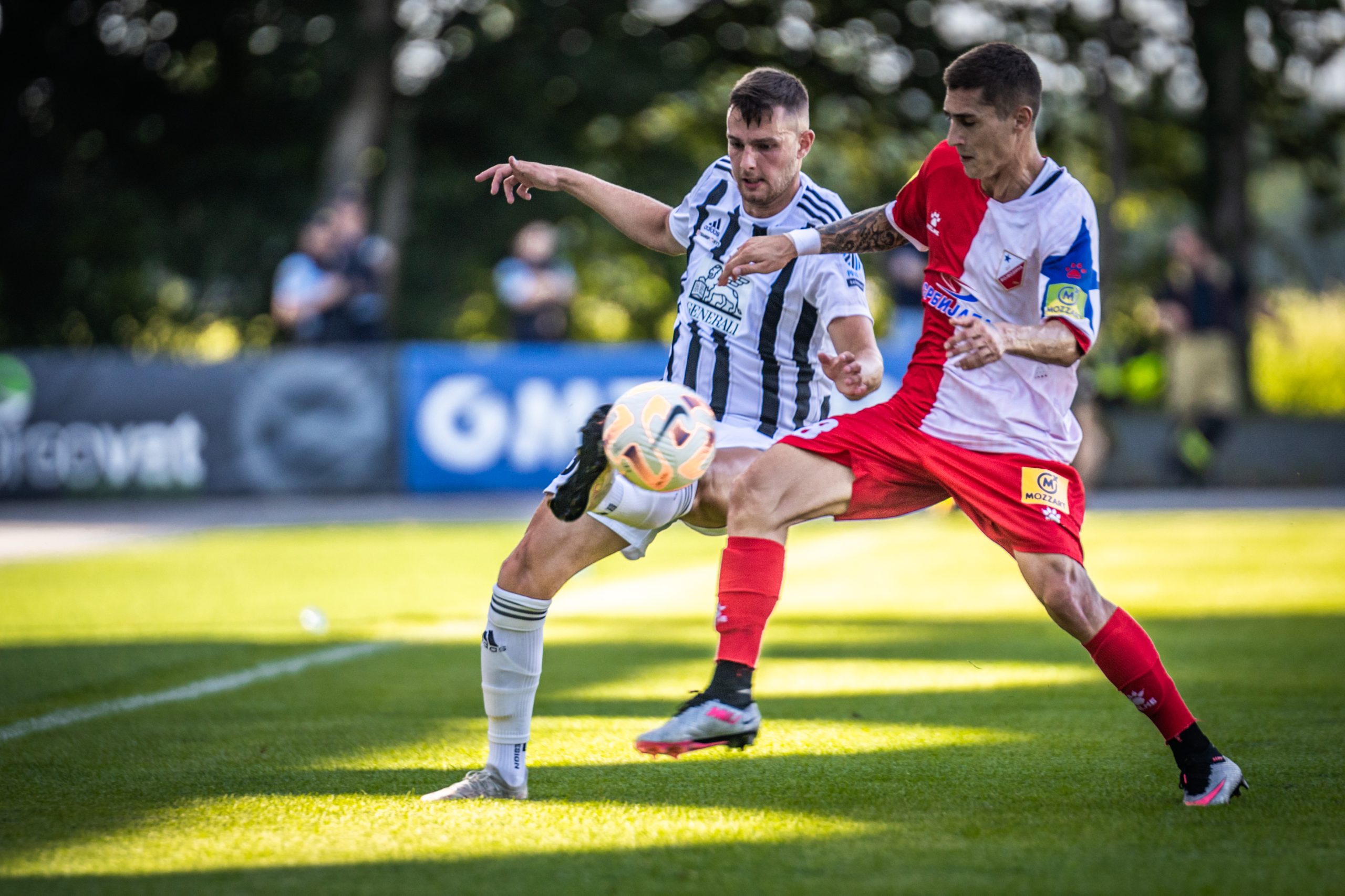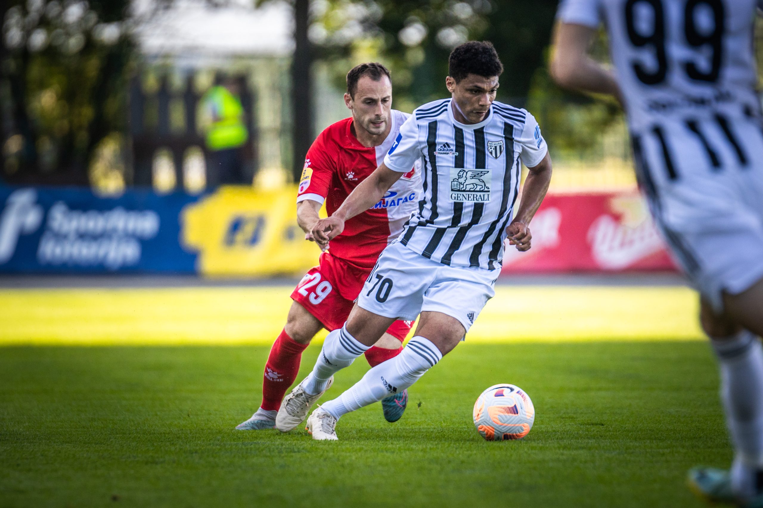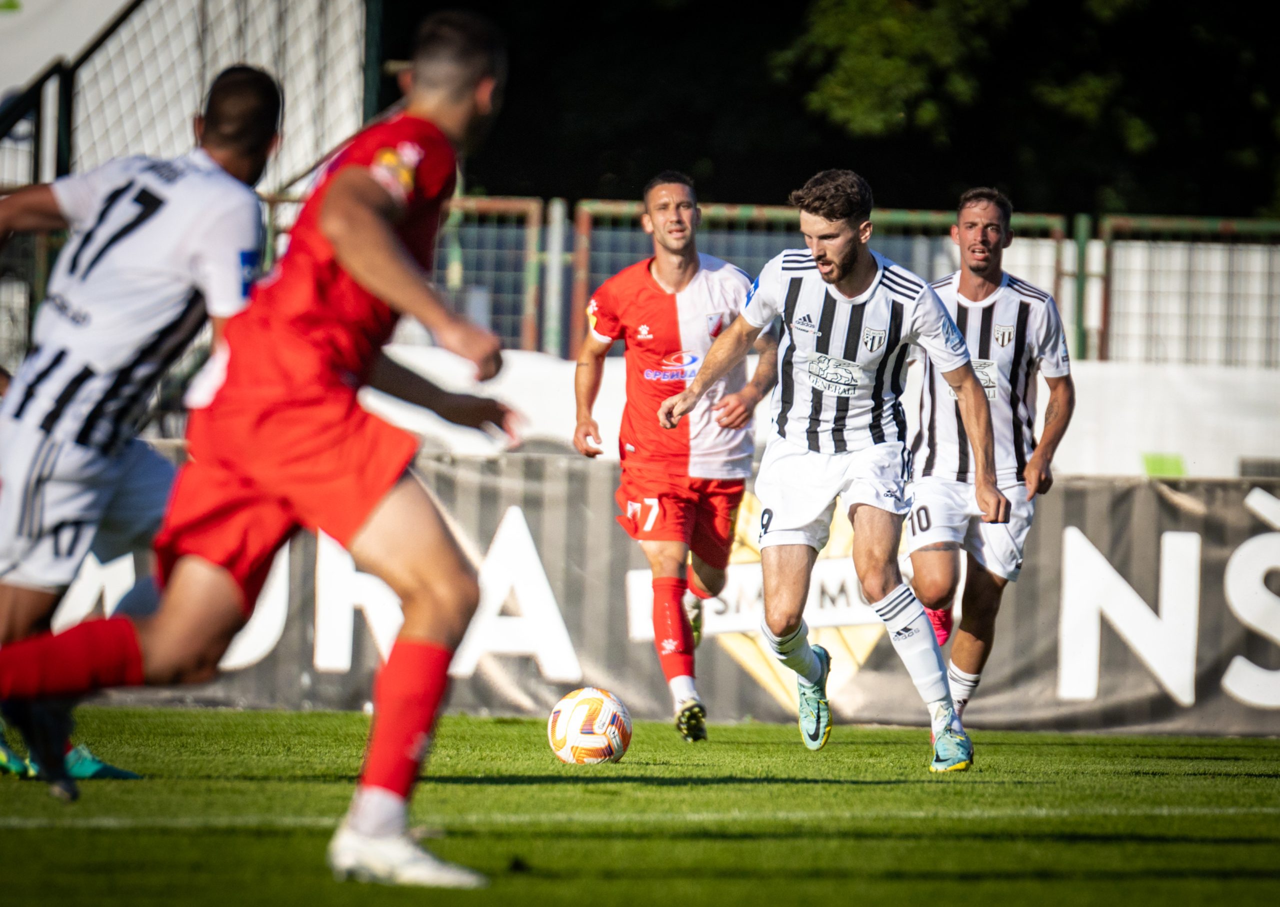 Foto: Niko Časar Deli na Facebook Deli na Twitter Deli na Google+ Deli na Reddit Deli na Pinterest Deli na Linkedin Konec je pripravljalnega obdobja za nogometaše Mure, prihodnjo soboto se tudi za črno-bele sezona začenja zares. Na današnji generalki so Prekmurci igrali proti Vojvodini in vknjižili poraz. Končni rezultat na semaforju se je izpisal pri 1:2, čeprav je priložnosti na obeh straneh bilo še precej več. Predvsem prvi polčas, ki se je zaključil brez zmagovalca, je bil izjemno bogat z dogajanjem. Nogometaši srbskega prvoligaša so povedeli po vsega treh minutah dvoboja, ko so po levi strani lepo kombinirali, po podaji Filipa Antonijevića pa je iz neposredne bližine zadel Andrija Radulović. Muraši so za odgovor potrebovali dobrih deset minut, po predložku iz kota je najvišje v gostujočem kazenskem prostoru skočil Kai Cipot in z glavo zabil za izenačenje. S podajo se je izkazala najnovejša okrepitev črno-belih, Roko Jurišić. Do odmora se mreži več nista zatresli, čeprav sta obe ekipi imeli izrazite priložnosti za vodstvo. Klemen Mihelak je nekajkrat bil na velikh preizkušnjah, toda izkazal se je z dobrimi obrambami. Mura je v zaključku obračuna bila dvakrat zelo blizu popolnega preobrata. V 36. minuti se je Dardan Shabanhaxhaj popolnoma sam znašel pred vrati Vojvodine, toda meril je naravnost v vratarja Lazarja Carevića. Tudi zadnja priložnost prvega dela je pripadla Muri. Tik pred odhodom na odmor je Carević odlično ubranil strel Ivana Šarića, v nadaljevanju pa je do odbitka prišel Srđan Kuzmić, toda zadetek 19-letniku je eden od srbskih branilcev v zadnjem trenutku preprečil z drsečim startom. V drugem delu se je dogajanje na terenu umirilo, tempo igre pa so prekinjale tudi številne menjave obeh strategov. Najbližje zadetku za Muro je v zaključku dvoboja bil Luka Turudija, katerega močan strel z razdalje je zletel tik ob levi vratnici Carevićevih vrat. Uspešnejši so bili Novosadčani, in sicer v 84. minuti. Za zmago lani petouvrščene ekipe srbskega superlige je poskrbel Nikola Čumić. Mura – Vojvodina 1:2 (1:1) Cipot (12′); Radulović (3′), Čumić (84′) Fotogalerija zanimivega obračuna iz Fazanerije, skozi fotografski objektiv Nika Časarja: Foto: Niko Časar Foto: Niko Časar Foto: Niko Časar Foto: Niko Časar Foto: Niko Časar Foto: Niko Časar Foto: Niko Časar Foto: Niko Časar Foto: Niko Časar R. Š.